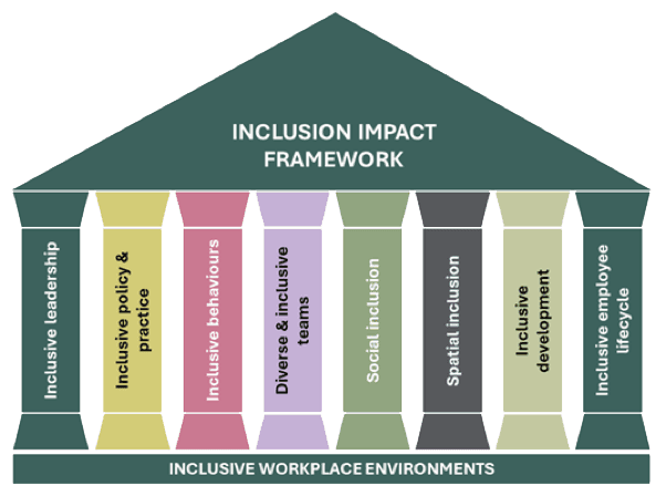 Developing sustainable inclusive environments to build diversity in the workforce has been the focus of our research over the last 10 years, building an understanding of how change occurs within an organisation, and how we measure that change when it happens. Our inclusion impact framework, linking EDI intervention to indicators of change (including changes in attitudes and behaviours across the workforce), provides organisations with the tools to measure their progress towards workplace inclusivity.